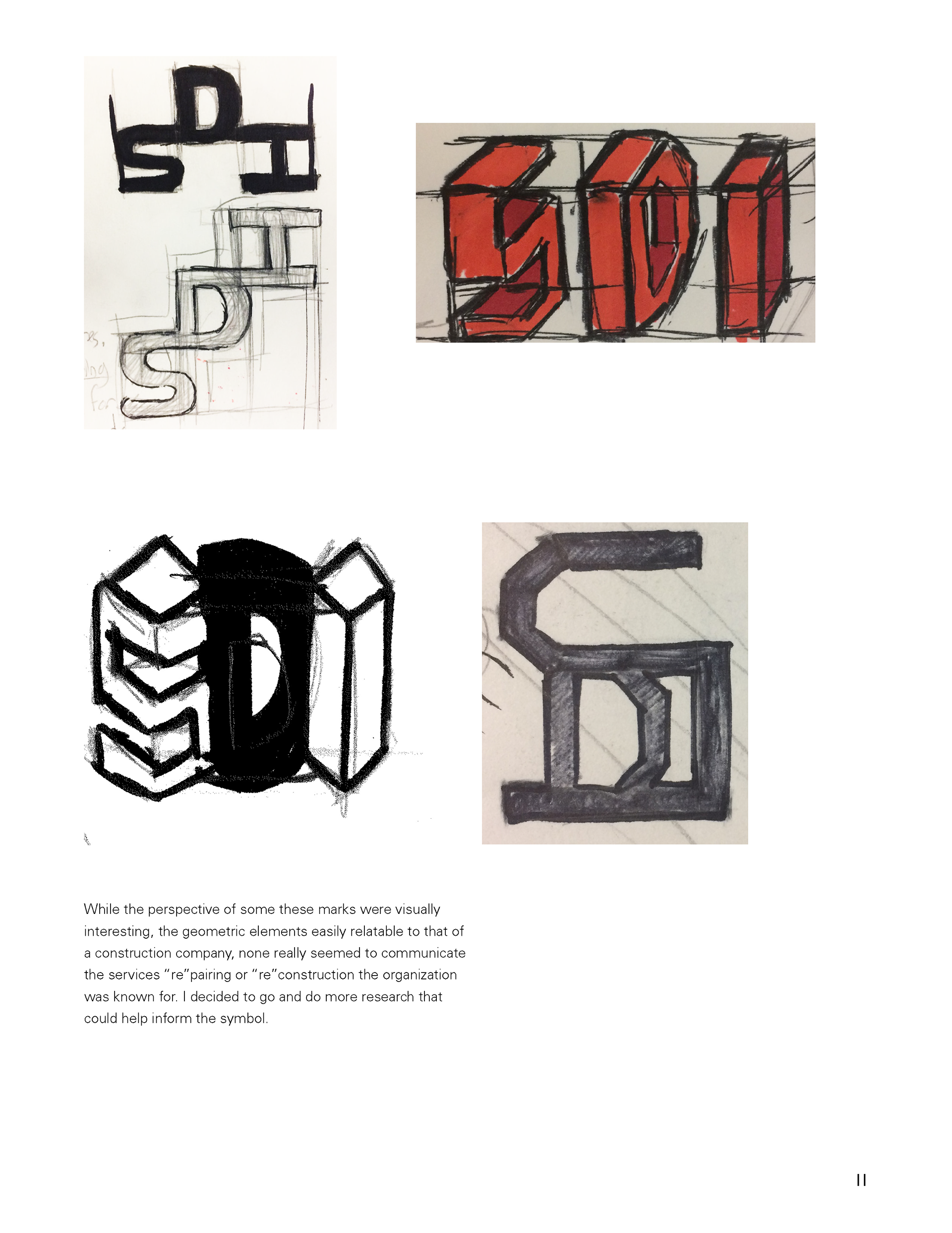 The detailed process of research when reimagining the original Structure Designs, Inc. logo.